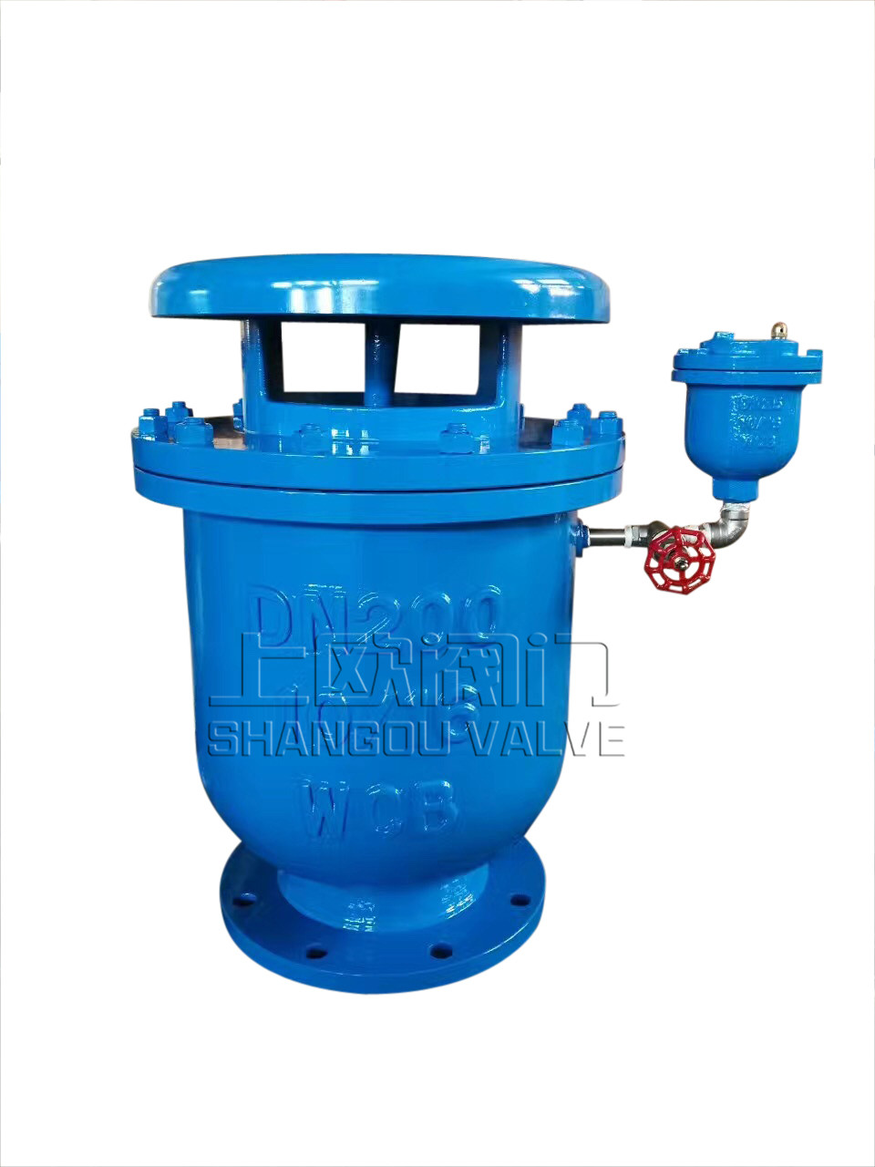本閥閥體為圓桶狀,閥門內件包括不銹鋼浮球、杠桿及閥瓣。本閥安裝在泵出口處或送配水管線中,用來排除集積在管中的空氣,以提高管線及水泵的使用效率,當管內一旦產(chǎn)生負壓時,此閥迅速吸入外界空氣,以防止管線因負壓而損壞。